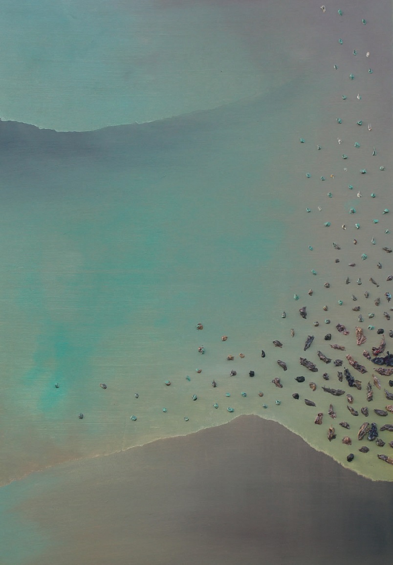 Prezentowany zestaw artefaktów autorstwa tak różnych artystów wpisuje się też we wspomnianą wcześniej pełną skalę dźwięków za pomocą zastosowanych przez ich twórców rejestrów barwnych. Mamy więc achromatyczną „ciszę” w czarno-białych, bardzo graficznych, quasi-żartach, czyli wycinanko-wyklejankach Kmity; delikatnie znaczone błękitem, równie silnie graficzne kolaże Terlikowskiej; mistyczne szarości Cieślikowskiej-Kulmatyckiej, zdyscyplinowaną i oszczędnie chromatyczną syntezę Dymitrowicza, odważnie przygaszoną gamę u Tyszkowskiego, oniryczną i melancholijną szaro-fioletowo-turkusową przestrzeń u Ziomka, zdecydowane przełamywanie szarości czerwienią u Merkel, wreszcie tętniące pod powierzchnią obrazu u Merkla, a na angobowanej powierzchni gliny klinkierowej u Ziemby wysmakowane mariaże kolorów. A potem coraz śmielej, coraz więcej barw, coraz bardziej nasyconych: u Hałasa, Kuczmy, Wołczuka, Nitki, Nikt, aż do prawdziwego nieokiełznania chromatycznego u Banaś.