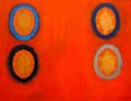 cyklu. Artysta, nadal zainteresowany tajemniczymi związkami ludzkiego losu i nieodgadnionych kosmicznych przestrzeni, zajął się zaledwie kilkoma znakami, wybranymi spośród wielu wypracowanych przez siebie organizmów. (...) Artysta w nowym cyklu osiągnął - jak bodaj nigdy przedtem - wyjątkowo wyraziste brzmienie barw pulsujących, przyciemnionych przestrzeni, pełną harmonię wyszukiwanych przez siebie latami zestawów kolorystycznych i własną miarę