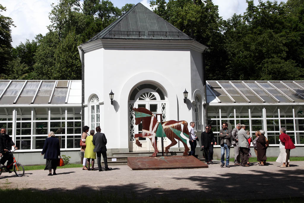 W sobotę 20 czerwca w Centrum Rzeźby Polskiej w Orońsku odbyło się uroczyste otwarcie trzech wystaw związanych z obchodami setnej rocznicy śmierci Józefa Brandta. Rocznica daje szansę na przypomnienie jego twórczości, a także samej postaci artysty, który - mieszkając na stałe w Monachium - szczególnie blisko związany był z Orońskiem. Tu bowiem, w majątku żony malarza - Heleny z Woyciechowskich Pruszakowej - rodzina spędzała lato. Z okazji jubileuszu Centrum Rzeźby Polskiej przygotowało obszerny program, którego głównym punktem jest wystawa Józefa Brandta prezentowana w Muzeum Rzeźby Współczesnej. Towarzyszą jej współczesne pokazy recepcji twórczości naszego patrona: ekspozycja Kłus, stęp, cwał w Galerii Oranżeria oraz projekt polsko-niemiecko-ukraiński Dziedzictwo. Patrząc na Brandta prezentowany w Galerii Kaplica, we wnętrzach pałacu, na tarasie kawiarni Domu Rzeźbiarza i w przestrzeni parku, gdzie odbył się performance niemieckiego artysty Christopha Both-Asmusa Tree Walker. A Moment in Time przed wejściem do pałacu Józefa Brandta.