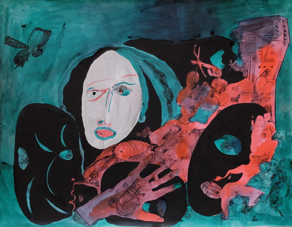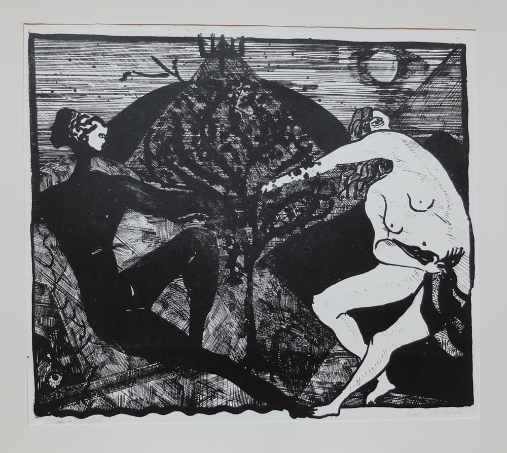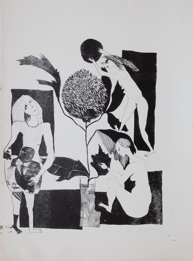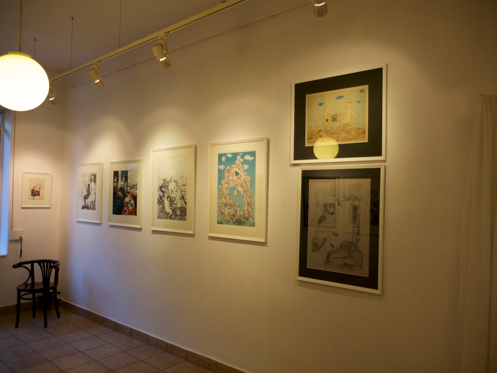 Równolegle do wystawy trwającej w krakowskim Muzeum Narodowym możemy delektować się wystawą prac na papierze Ewy Kuryluk i towarzysząca jej książką, stanowiąca katalog i zarazem opracowanie twórczości artystki z lat 1959-1975. Graficzny dorobek imponuje biegłością warsztatową, wielką swobodą wydobywania wszystkich niuansów litografii, wzbogacanej kolażem, dodanym kolorem, dobranym barwnym tłem. Rysunek białym tuszem na czarnym papierze misternie opracowuje delikatne szczegóły bujnej narracji.