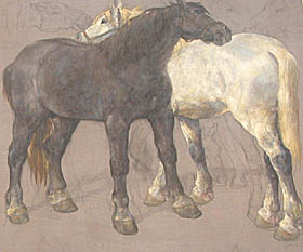 Ponadto eksponowane są delikatne, nastrojowe rysunki tuszem przedstawiające konie. W tych, wyraźna jest osobista nuta szczerej miłości do tych niezwykłych zwierząt.