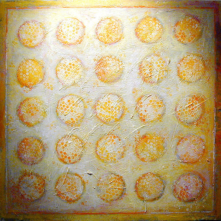 To część nowych kompozycji. W innych, też nacechowanych dynamiką, autorka ustawia w opozycji tło i fakturę. Równiutko założona muzealnym złotem powierzchnia obrazu rozbita zostaje wyciśniętymi prosto z tubki makaronami farby zasychającej w określonym rytmie, nasuwającym skojarzenia z zapisem pisma i matematycznymi wyliczeniami. Konotacje naukowe są tu bardzo na miejscu, gdyż inspiracją dla autorki do namalowania tych obrazów stały się osiągnięcia współczesnej fizyki, badające budowę materii. Świat, według tych teorii zbudowany jest z rozmaitych cząsteczek zawieszonych w próżni. Nie jesteśmy w stanie zobaczyć, jak one wyglądają, lecz z obliczeń naukowców niezbicie wynika, że istnieją. Są tak małe, że prawie nie mają masy. Jak wyglądałyby, gdybyśmy mogli je powiększyć i obejrzeć? Odpowiedź Kilianowicz-Bareckiej jest oczywiście tylko jedną z możliwych, ale interesującą propozycją obrazowania niepostrzegalnego ludzkim okiem świata.