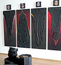 Rzeźby są dość pesymistyczne w wyrazie. Czarne, drapieżnie wyciągające ku górze ucięte „kikuty”, kojarzą się z rozpiętymi w geście rozpaczy dłońmi, czasem wronami przysiadłymi na pniach drzew. Tytuł wystawy w języku