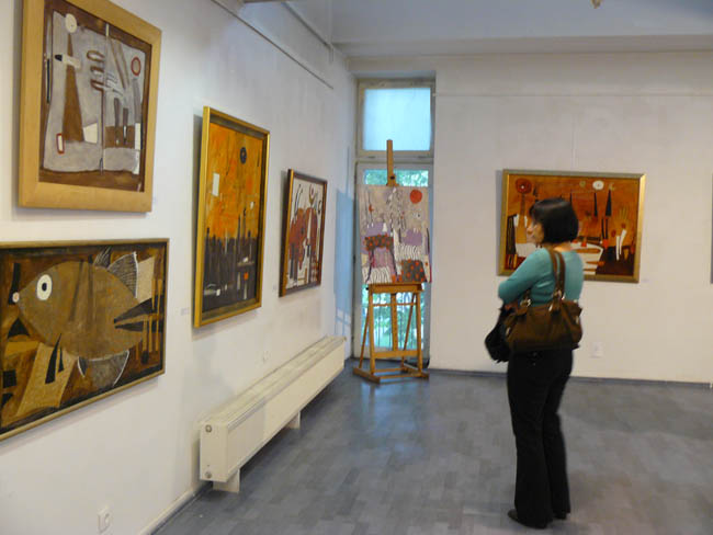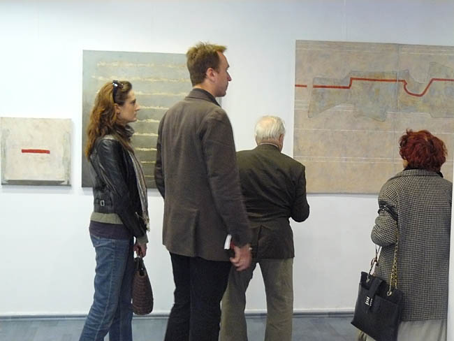 Zresztą Hanna Karasińska-Eberhardt studiowała na warszawkiej ASP w pracowni Tadeusza Dominika, a dyplom zrobiła u Stefana Gierowskiego. I szkoła mistrzów pobrzmiewa w pracach artystki. Szczególnie jeśli chodzi o dwa obrazy z cyklu „Sakrum” zdecydowanie wybijające się (pozytywnie!) spośród większości prezentowanych przez malarkę płócien. Są to prace z pozoru niefiguratywne, zbudowane z opartych na geometrycznych podziałach płaszczyzn prawie monochromatycznych kolorów. Prawie, bo atystka delikatnie ryje w strukturze farby poziome kreski, symbolizujące tytułową „Drabinę Jakubową”. Zupełnie innego charakteru są pozostałe, kipiące kolarami obrazy artystki, które wypełniają fantastyczne twory rodem z prac surrealisty Joana Miró. Artystka zalicza je do swoich komercyjnych prac i... ma rację. Bo obrazy mogą przyciągać atrakcyjnością wizualną, ale właściwie nie wnoszą niczego interesującego do polskiej sztuki.