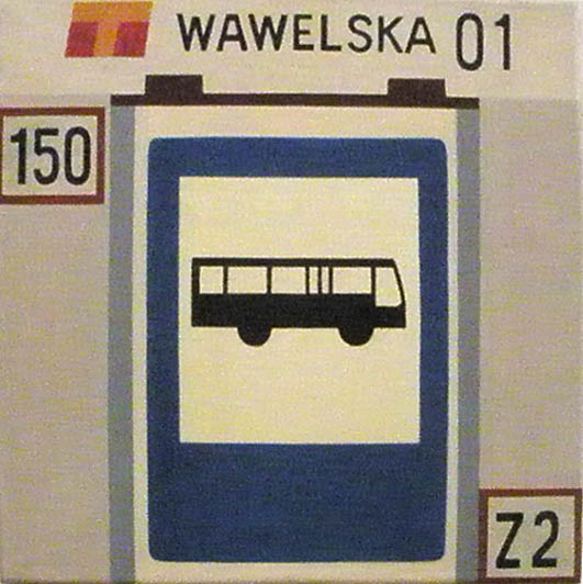 Igor Przybylski maluje środki lokomocji. Po fascynacji pociągami tym razem są to autobusy, a raczej ich czoła i numery. Są też fragmenty przystanków, a nawet kasownik.