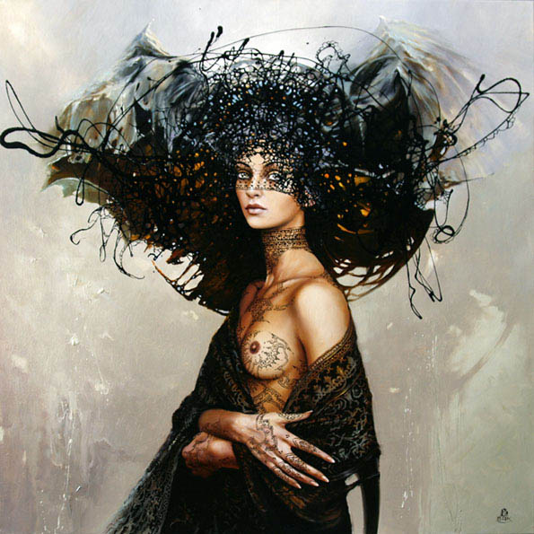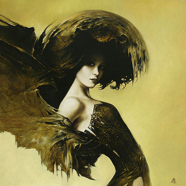Całkiem inne w charakterze są miedzioryty i rysunki. Dokładnie ukazują anatomię młodego ciała, ale także poprzez nanoszenie niezliczonej ilości kresek, oczom widza, ukazują się piękne, gotyckie katedry zanurzone w pajęczynach czasu (Tryptyk Babel). Kościste stwory, szponami oplatają szczupłe kobiece ciała (Pożeracz cieni). Prace z tych cykli i seria Żaglowiec, przypominają w swojej formie twórczość Zdzisława Beksińskiego.