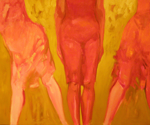 "Miłomarki w czerwieni" – obie malarki mrużą oko w stronę gości Starej Prochowni. A tak naprawdę proponują spotkanie na serio – porozmawiajmy o życiu i miłości, o tworzeniu i sztuce, odnajdźmy się w pobratymstwie bycia w świecie. Fundują przekroczenie estetyki przeżycia, prowokują rozważanie tego, co najważniejsze tu, gdzie się teraz znajdujemy. Obrazy Miłowskiej przywodzą na myśl skojarzenie z liryczną zasłoną. Są jak wiersze, mają własną narrację, dążą krótszą drogą do sensu niż fabuła, wywołują w umyśle pojęcia: miłość, śmierć, rozczarowanie, szczęście, prawda… Każdy obraz jest zdarzeniem poetyckim. Środki warsztatowe pozostają w ukryciu za odbiorem nastroju, który wyprowadza sztukę z życia, z nieznanego widzowi faktu. Postać ludzka zawsze wiąże te dwie rzeczywistości, pozwalając doświadczyć przez moment niepodzielności. Malarska płaszczyzna nie dzieli stron na zmysłową i duchową, na potoczną i artystyczną, realną i wyobrażoną. Wszystko jest w zasłonie, jaka uformowała się z materii. Renesansowo piękne sylwetki pozostały bez wykonczenia. Czysta, "boska" czerwień została zmącona niedoskonałością innych barw. Nic nie jest wiadome do końca, w sztuce – tak jak i w życiu – ideał nie osiąga całkowitego spełnienia. Malarskie wizje Markiewicz ulokowały się w rękodziełach z tkaniną. Spotkanie twórczości tych dwu artystek objawiło coś, co na osobności byłoby trudniejsze do wykrycia. Analogicznie moc oddziaływania tkanin i obrazów zakotwiczona jest w kompozycji, a kolorystyka udatnie pozoruje główne sprawstwo liryki. W geometryzacji u Katarzyny Markiewicz można się dopatrzyć czynnika poetyckiego i to on przede wszystkim umożliwia przejście od doświadczenia egzystencjalnego do konstrukcji artystycznej. W ten sposób rzeczywistość porządkuje się intelektualnie, potoczność zostaje poddana przemianie, stwarza się forma. Widz to poczuje jako wzruszenie, kiedy oko wyłuskuje punkty, w których łamie się idealny prostokąt w robocie ręcznej z wiotkich skrawków jedwabiu. Potem już nie dziwi, że ptaki na płótnie ze zużytych worków puszą się osobliwą urodą i w jakimś własnym szyku. To ptastwo z domu Markiewiczów nie ma antenatów w żadnym atlasie przyrodniczym, wszystkie okazy pochodzą z tego samego rodu, a każdy zajmuje wyjątkowe, jedyne miejsca, jakie mu wyznacza rzeczywistość sztuki. Utkane misternie lub haftowane połacie mogą być narzutą, obrusem albo dywanem, ale one są "do niczego" – tak jak wazon matki Różewicza. Gdyby kto wetknął igły w ptasi kształt powstały na miękkiej materii, to by od tego ogłuchł na artystyczny dźwięk poduszeczki. Dość wspomnieć poruszenie zasłony w rajskie ptaki na przyjęciu pani Dalloway, żeby rozmowa stała się fascynująca. Gdy rzeczywistość zewnętrzna budzi wyobraźnię w człowieku pod wpływem emocjonalnego impulsu, możliwości sztuki nie mają końca.