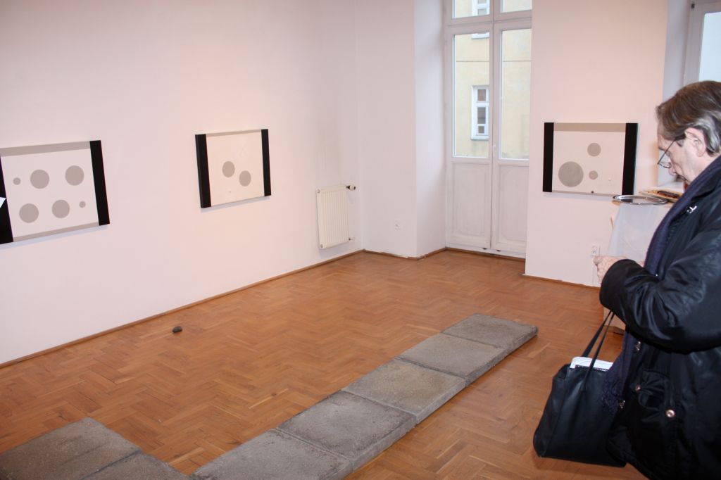 Na wystawę po pomieszczeniach, w których wiszą prace artysty, wchodzi się po płytach chodnikowych. To część przekazu w postaci instalacji. Pod niektórymi pracami, na podłodze, leżą kamyki i kamienie. To są elementy, które spajają w całość ekspozycję. Kamienie milczą i trwają. To podróż po prawdziwym ogrodzie zen. To ogród zen Kōji z jego pracami.