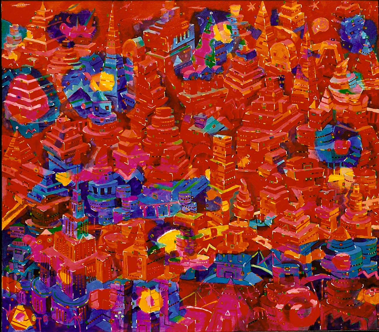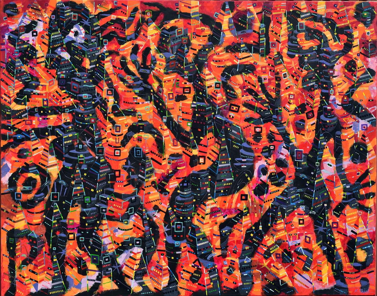 Jego wielowątkowe, pulsujące obrazy, grafiki, fotografie łączą abstrakcyjne formy z organicznymi i geometrycznymi konturami, urzekają kolorystyką, nieograniczoną paletą barw. Sprawiają wrażenie, że pochodzą z innych, pozaziemskich cywilizacji. Z rozwagą mówią o istocie i sensie istnienia, potrzebie poznawania natury i mechanizmów życia; ostrzegają przed burzeniem ładu i porządku zastałych struktur. Są zapisem doznań i oczarowań, wzruszeń i irytacji. Stanowią bardzo osobiste, przekonywujące odczytanie metafizycznego i egzystencjalnego wymiaru rzeczywistości. Są wśród nich obrazy „świecące”, zaczarowane, odkrywające swoją piękność w blasku światła ultrafioletowego. Urzekają niezwykłymi, efektownymi impresjami ujawniającymi wszystko to, co w świetle normalnym, dziennym jest niewidoczne, odległe jak kosmiczne mgławice, konstelacje gwiezdne.