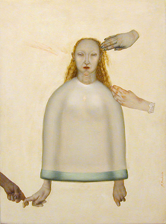 Bohaterowie Moskwy zawieszonymi są pomiędzy realnością a światem zupełnie nierealnym, pomiędzy życiem a śmiercią, pomiędzy codziennością a literaturą i mitem. Jej kobiety dziwnie nieobecne, ogarnięte rozpaczą, skąpane w obojętności, zachowują się jak somnambuliczki, jakby patrzyły na świat oczami autystycznych dzieci. Umieszczone na wzorzystych, floralnych tłach będących odpryskiem średniowiecznych wizerunków Madonn malowanych w różanym krzewie, żyją nieokreśloną realnością w przestrzeni wypełnionej klimatem nadrealizmu.