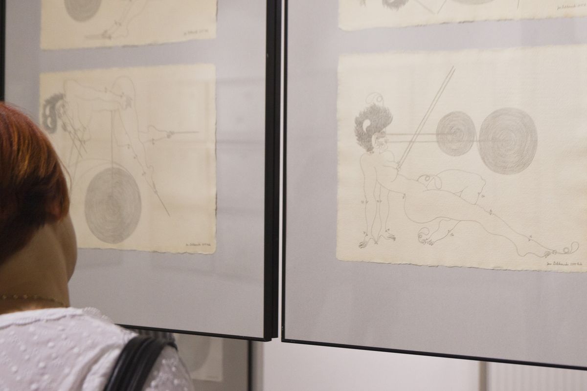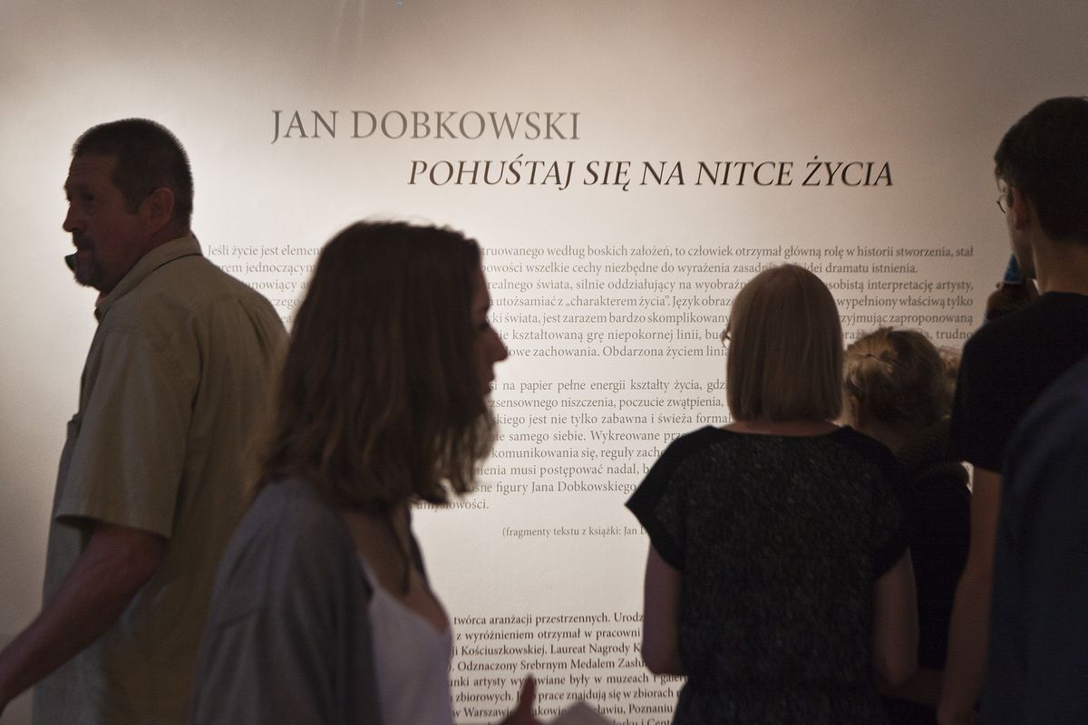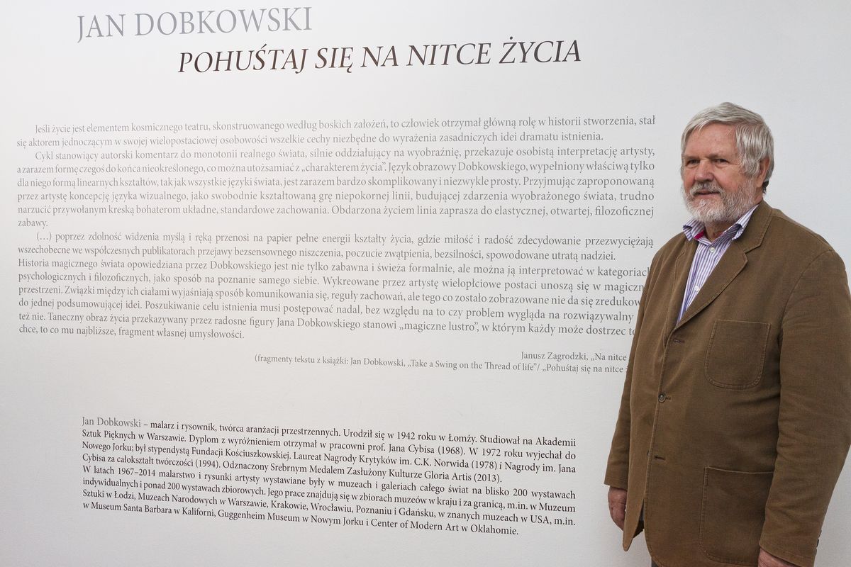 (…) Rysunki Dobkowskiego to poematy życia. Kreśli figury i znaki swobodnie rozwijające się w wielu kierunkach. Sztuka rysowania wynika w równym stopniu z wiedzy, co umiejętności. Artysta uzyskał biegłość w kreowaniu rzeczywistości. Przekształcając ją przywołuje siły ponad naturalne, reżyseruje zdarzenia swobodnie kształtujące się na płaszczyźnie rysunku. Jest dawcą form, których materializację poprzedza intuicja i kontemplacja - mówi o wystawie Agata Smalcerz, dyrektor Galerii Bielskiej BWA.