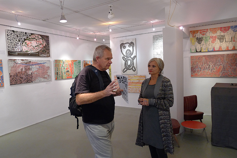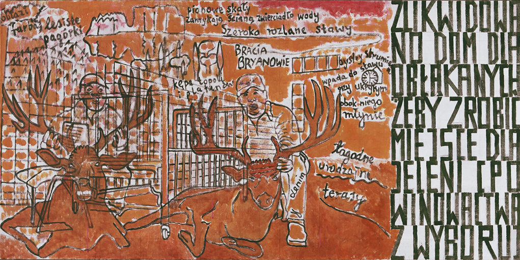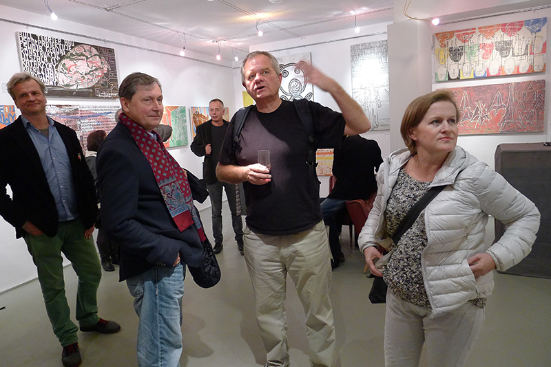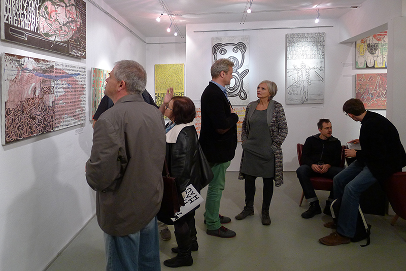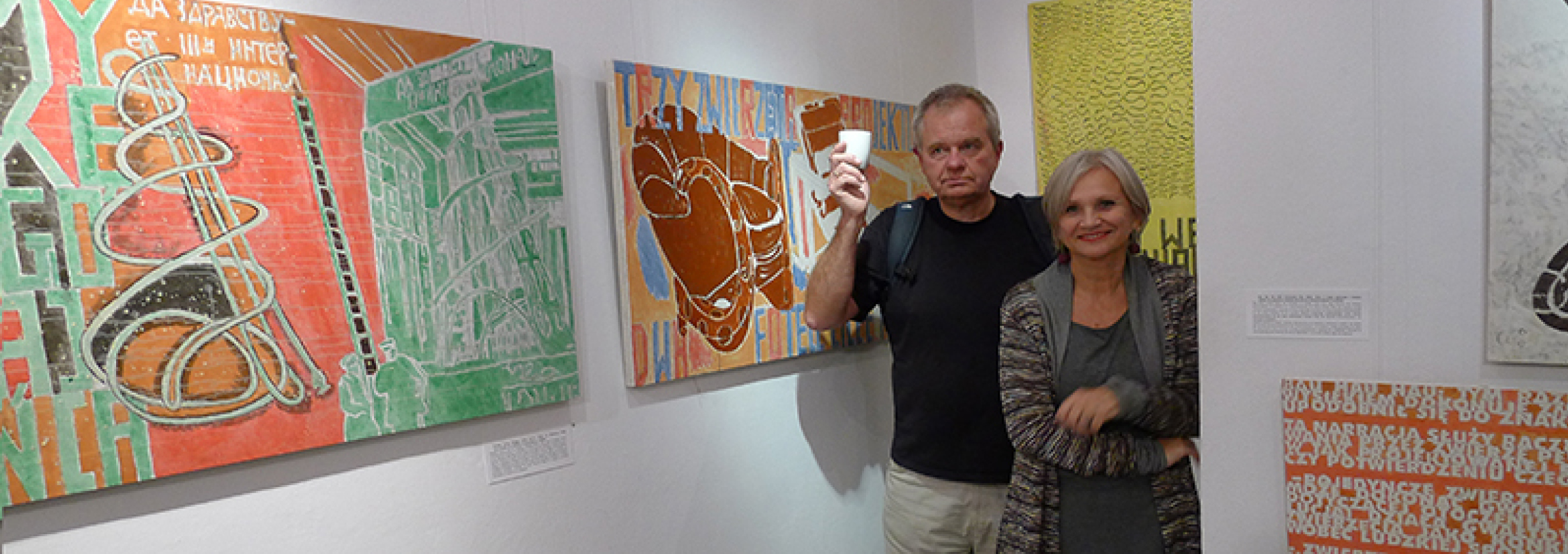 Jak zwykle obrazy Marka Sobczyka mówią i choć czasem są to rozwlekłe monologi, czasem lapidarne hasła - zawsze trafiają w sedno. Mówią też dosłownie - zapisanym na płótnie tekstem i znakiem, rozpoznawalną przez widza formą i kolorem. Są dla widza jak rebus do rozszyfrowania. Zatem obejrzyjmy wystawę i odgadnijmy hasło ukryte w obrazach.