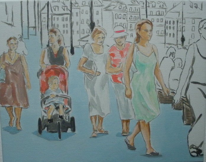 Artysta przebywał w czerwcu ubiegłego roku na stypendium w stolicy. Sumę swoich obserwacji zawarł w małych obrazach przedstawiających codzienne sytuacje. Są one jak zapiski na skrawku serwetki.