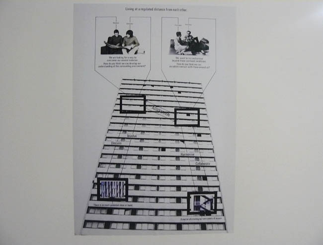 W wystawie przewijają się trzy zasadnicze wątki: produkcja przestrzeni, koncepcja języka uniwersalnego i polityka przedstawiania. Jednak nie są one w sposób wyraźny zaznaczone w przestrzeni ekspozycji – kuratorce zależało, aby poszczególne motywy swobodnie przenikały się wzajemnie. Pierwszy z nich bierze na warsztat relację pomiędzy architekturą modernizmu a przestrzenią społeczno-polityczną (tu m.in. artyści tacy jak: Katja Eydel czy Martha Rosler). Drugi wątek odwołuje się do artystycznego języka modenizmu z jego pretensją do stworzenia uniwersalnego kodu (m.in. Armando Andrade Tudela, John Knight). Z kolei trzecia część