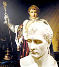 Wchodząc na wystawę, nie można nie zauważyć ustawionej na środku ogromnej reprodukcji obrazu Françoisa Gérarda, ukazującej Napoleona I w pełnym majestacie stroju koronacyjnego. Nie da się ukryć, że bogactwo, splendor i wszechobecne złoto na obrazie robią wrażenie, zwłaszcza na tych, którzy do tej pory znali wizerunki Napoleona w nieco skromniejszym i mniej oficjalnym stroju. Zaraz obok ustawiono popiersie cesarza, dłuta Antonio Canovy. Całość urządzono według kryteriów chronologicznych i