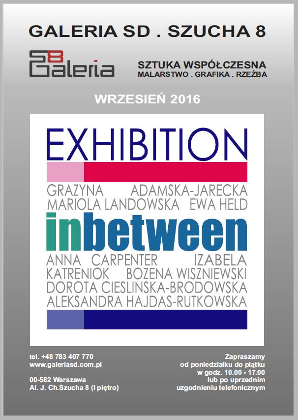 Prezentowana wystawa jest przedsięwzięciem ośmiu polskich artystek tworzących w sześciu krajach na trzech kontynentach. Zgodnie z sugestią jaką niesie tytuł, wystawa konfrontuje osiem niezależnych, malarskich opowieści - zręcznie balansując pomiędzy różnorodnością stylów, rodzaju ekspresji, technik i form malarskiej wypowiedzi - w ramach zaskakująco spójnej ekspozycji. W reprezentacyjnych i zarazem kameralnych wnętrzach galerii zlokalizowanej w eklektycznej kamienicy, każda z autorek prezentuje indywidualną, artystyczną narrację o poszukiwaniu owego tajemniczego in-between, które bardziej łączy, niż dzieli...