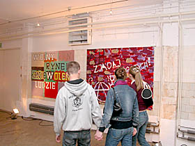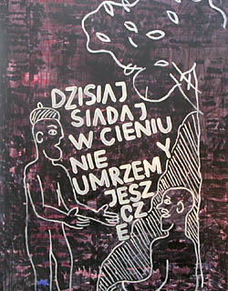 Istotnym aspektem części z nich (przedstawienia inspirowane napisami na murach)jest ich bieżący charakter. Są malarskim „zapisem” pośrednio stanu świadomości pojedynczych osób lub grup społecznych. Czerpią inspirację z niezwykle żywego forum dyskusyjnego, którego miejscem są otaczające nad ściany domów.”
