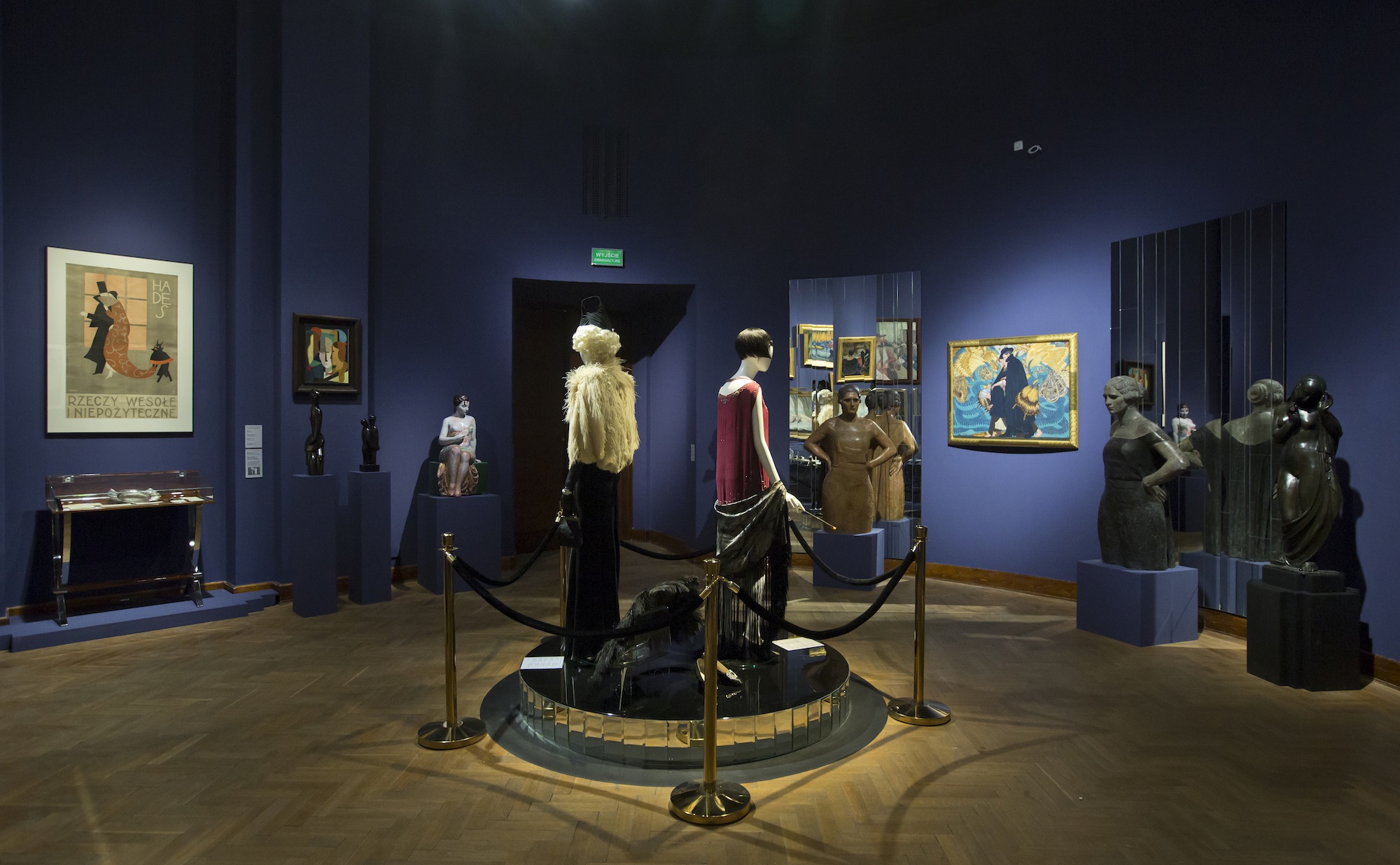 Prezentowane obrazy, rzeźby, meble, plakaty, zaproszenia oraz stroje i przybory toaletowe przenoszą widza w klimat przygotowań do balu w Warszawie okresu międzywojennego. Eksponaty pochodzą ze zbiorów Muzeum Narodowego w Warszawie, uzupełnione o dzieła z kolekcji członków Stowarzyszenia „Przyjaciele MNW”, Agnieszki i Marka Roeflerów, zbioru dzieł artystów polskich związanych z École de Paris, oraz Adama Leja, historyka sztuki, posiadacza największej w Polsce kolekcji ubiorów dawnych, którym opiekę kuratorką zapewniła Renata Higersberger, kustosz w Zbiorach Sztuki Polskiej MNW.