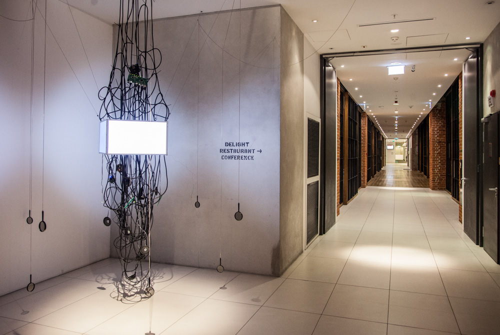 W inspirującej scenerii, pełnej zaskakujących rekwizytów minionej epoki rewolucji przemysłowej, doświadczamy sztuki, której współtwórcą jest także widz. Obiekty nabierają wyjątkowej mocy w przepastnej przestrzeni Hotelu Andel’s, który jest wymarzonym polem dla ich zabawy z widzem. Zagadnienia ruchu od wieków budzi podziw i fascynację nie tylko artystów - inspiruje nas wszystkich. Interaktywny charakter sztuki kinetycznej i angażowanie widza w rejestrację kolejnych aktów twórczych. Stajemy się współtwórcami nowej formy artystycznej, czasami wyłącznie poprzez swoją obecność.
