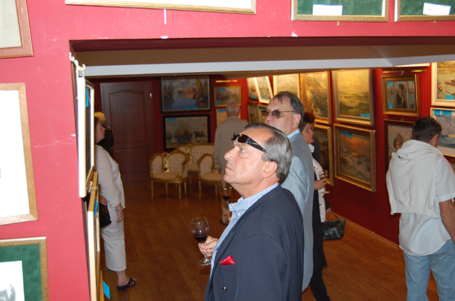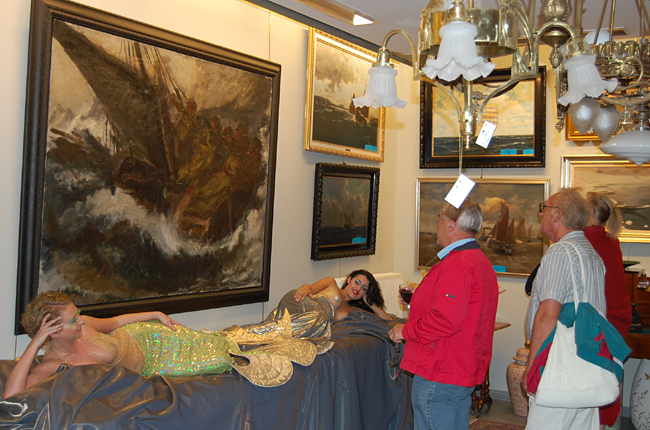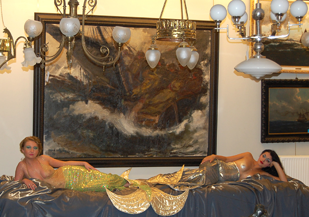 Organizatorzy zadbali o nastrój w każdym calu. Z głośników cicho płynęły odgłosy morskich fal, od czasu do czasu dał się usłyszeć krzyk mew, tłumy zwiedzających podziwiały zebraną przez Sopocki Dom Aukcyjny ofertę. Zebrani goście na dłużej zatrzymywali się przed obrazem "Sztorm" Emmanuela Mané-Katza by podziwiać mistrzowsko oddaną scenę oraz dwie półnagie syreny, które leżąc na specjalnie przygotowanym łożu cieszyły oko nie tylko panów.