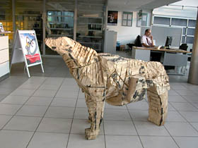 Jedną z nich jest przestrzeń dla rzeźby, jaka została stworzona w warszawskim salonie Skody. Wystawa prac Wojtka Pustoły jest już trzecią z kolei prezentacją, jaka została tu zorganizowana. Poprzednie dwie pokazywały twórczość Józka Nowaka i Sylwestra Abroziaka. Tak się złożyło, zapewne świadomie, że każda z ekspozycji prezentowała rzeźbę w drewnie. I choć były różnie zaaranżowane, za każdym razem w odmienny sposób wykorzystując walory interesującej przestrzeni salonu, dającego poprzez swoją wielkość, wysokość, szeroką płaszczyznę przeszkleń, a dzięki antresoli - różnych punktów widokowych, to każda z nich intrygująco bazowała na opozycji, jaka tworzyła się automatycznie pomiędzy naturalną, chropowatą, ciosaną powierzchnią drewna a błyszczącymi, nowoczesnymi płaszczyznami samochodowych karoserii. Nadawało to obiektom zupełnie nowy kontekst, który działał na drewno jak kontrapunkt, wydobywając jego surowe walory. A że rzeźbiarskie obiekty w trakcie wystawy są w przestrzeni salonu tematem pierwszym i dla każdego z gości w odbiorze obowiązkowym, gdyż kompozycja sali tak je pozycjonuje, to nie ma w takim towarzystwie nic zdrożnego dla sztuki. Zwłaszcza, kiedy pamięta się, że dla futurystów samochód w jego pędzie szybkości był piękniejszy niż klasyczna rzeźba. Szczególnie, kiedy wiemy, że ta teza już po kilku latach nie dała się obronić.