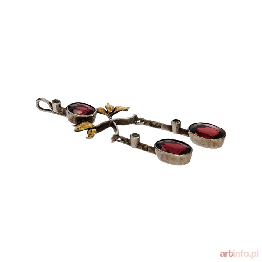 BROSZA W FORMIE KWIATU Z GRANATAMI, koniec XIX...