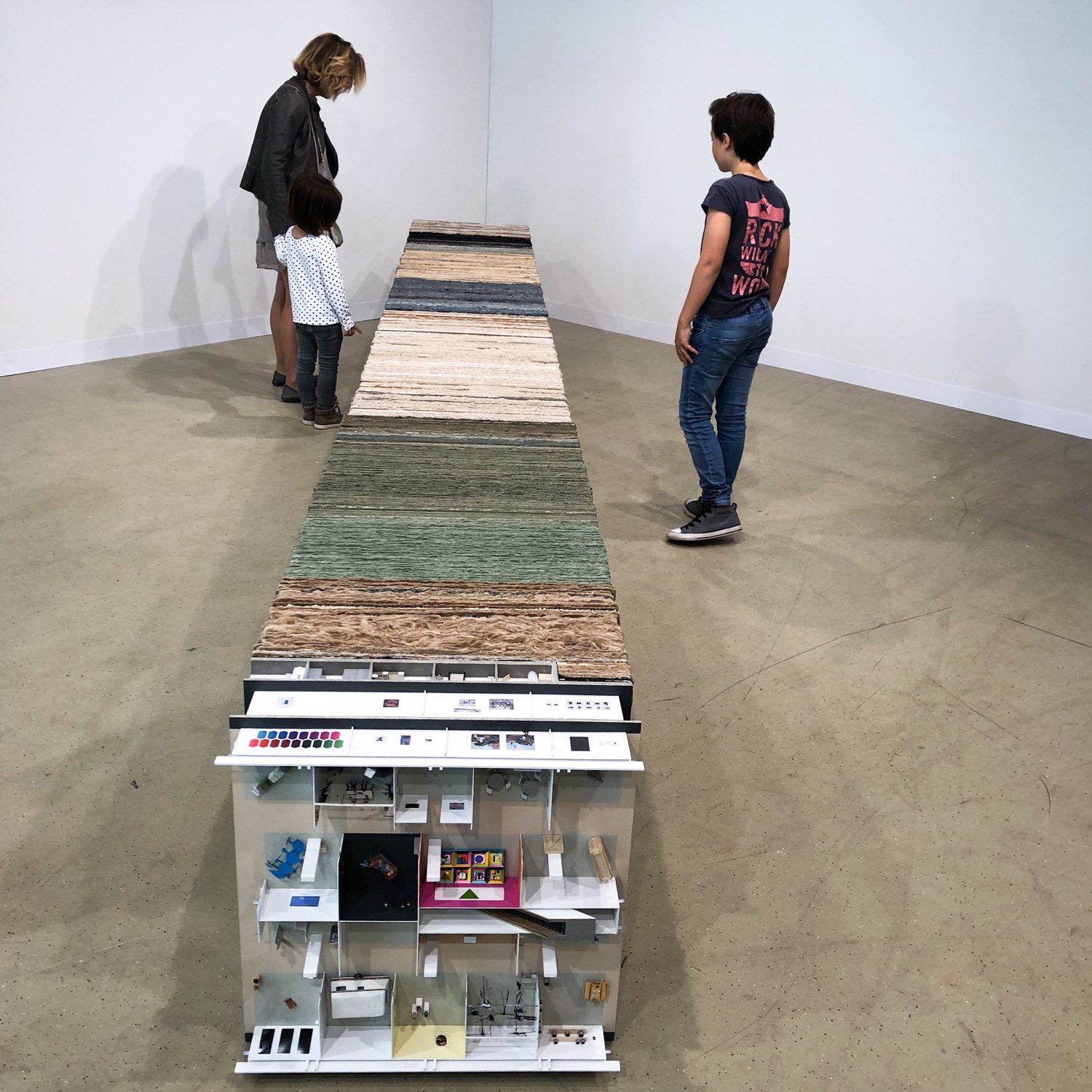 Liz Magor „Being This” zapełniła natomiast całą ok 10 metrową ścianę pudełkami, w których umieściła złożone i gotowe do kupienia / sprzedaży ubrania z second handów. Każdy egzemplarz miał tak zagięty makiet rękawa lub w ten sposób dołożoną rękawiczkę, aby wskazywał bezpośrednio na metkę z nazwą firmy, nierzadko bardzo znaną, jak Chloe, czy Miu Miu. „Being This” obiecuje tytuł pracy. Będziesz tym co założysz i skonsumujesz. Kim chciałbyś dziś się stać? Wybierając produkt zakładasz maskę, która zakrycie twoje prawdziwe ja i będziesz nadal bezpieczny. Kup sobie bezpieczeństwo, wygodę. Nie ważne jest samo ubranie, praca. To co się liczy to metka i to kim ona Cię uczyni.