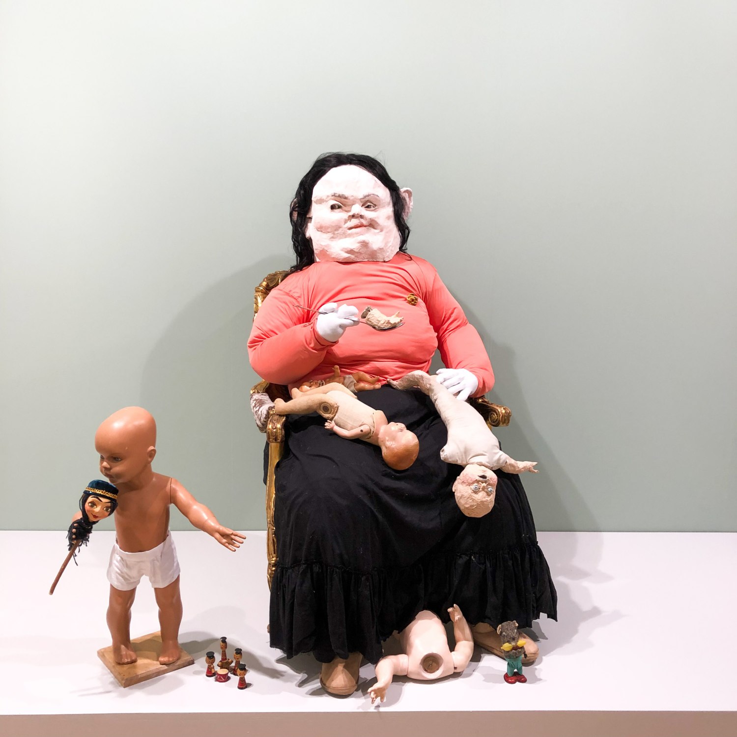 Od pewnego czasu zastanawiałam się dlaczego w twórczości artystów młodszego pokolenia tak ważnym motywem staje się maska. Wydaje mi się, że jest to wyraz tej ucieczki od prawdziwego wizerunku. Wymogu społecznego odnośnie naszego wystylizowanego, szczęśliwego i idealnego życia, który następnie obwieszczamy na mediach społecznościowych (gdzie przecież również jesteśmy jak te produkty na półce sklepowej - towarzyszy nam zachęcający komentarz a nasz wizerunek jest podrasowany przez jedną z miliona aplikacji, aby wyróżnić się i być atrakcyjniejszym). Czy już nie chcemy być sobą? Czy ważne jest jedynie co się ma i kim to nas czyni? Oto kilka pytań, które pozostały mi w głowie po tegorocznych targach Art Basel.